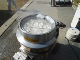 こうすると、一気にお湯の中につけることができ、一気に引き上げることができるので、時間も計りやすく、調理もしやすい。